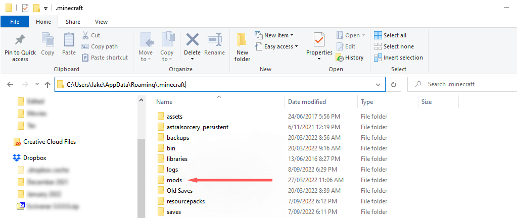 - Navigate to C:Users%username%AppdataRoaming.minecraft.
