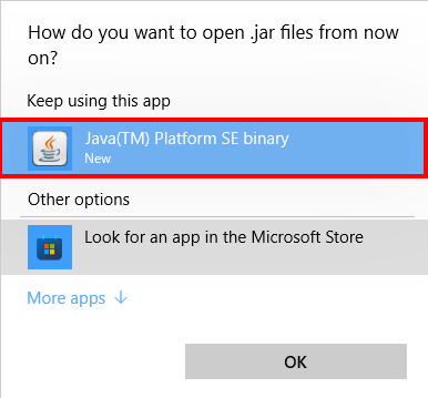 - Depending on your version, select Java, Java(™) Platform SE Binary, or OpenJDK Platform Binary. To find these, you may have to select More Apps.