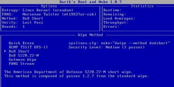 You can choose from different wipe methods including Gutmann Wipe, Department of Defense Short and Medium and others. I’ve used this program several times and have found that it does an excellent job erasing data on many different types of hard drives. If, for some reason, DBan does not work for you, you can try out the other programs mentioned below. ### KillDisk