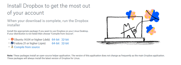 This will install GDebi which you need to run the Dropbox Installation. Now download Dropbox from the official site. Select the appropriate package for your Linux Desktop.