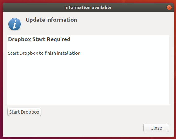 You will now see a pop-up box asking you to start Dropbox to complete the installation. Click start Dropbox.