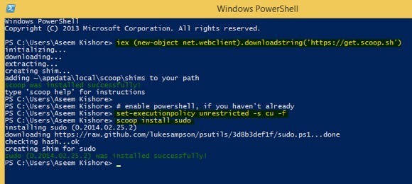 To install it, you need to open PowerShell and then type in the following commands in order: iex (new-object net.webclient).downloadstring(‘https://get.scoop.sh’)set-executionpolicy unrestricted -s cu -fscoop install sudo