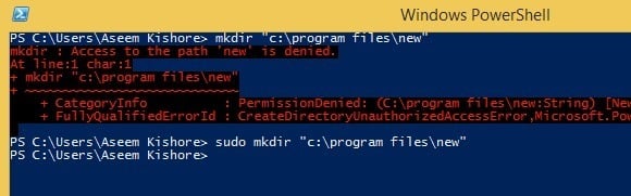 Above I’m using PowerShell, but you’ll get the same error using the command prompt also. However, once you install Sudo for Windows, just add the word sudo to the front of the command and it works perfectly with no errors!