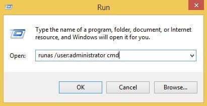 If you wanted to open an administrative command prompt, you could type the following: runas /noprofile /user:Administrator cmd