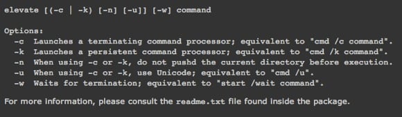 Elevate is a program that works with UAC and doesn’t work exactly like sudo. With Elevate, it will change the executing user to Administrator like the runas command does. However, it’s useful for working in the command line or with batch files.