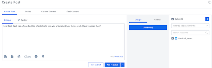 Thankfully, there are a host of tools available to help streamline your social media posting. These tools respond to things like blog posts and other inputs so that you don’t have to manually create posts, as well as providing you with the ability to schedule multiple posts ahead of time.