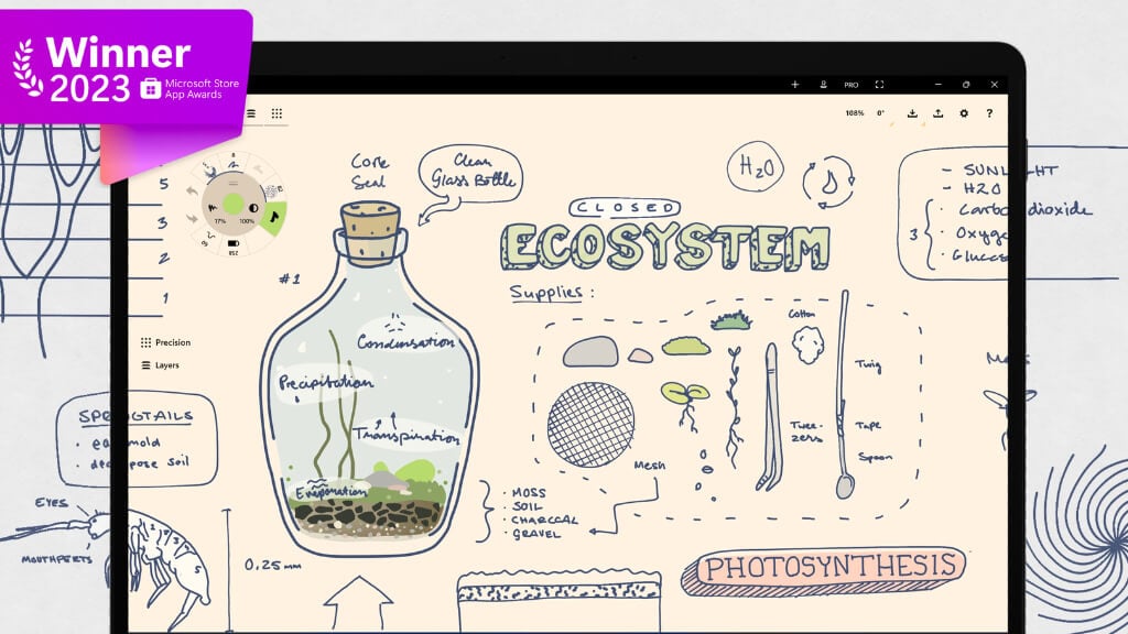 If you just want a basic yet powerful sketching app, you can have it for free. It includes brushes, color wheels, a maximum of five layers, various paper types, and basic JPEG export. This version is meant for tablets, which include the Microsoft Surface Pro devices and their pens.