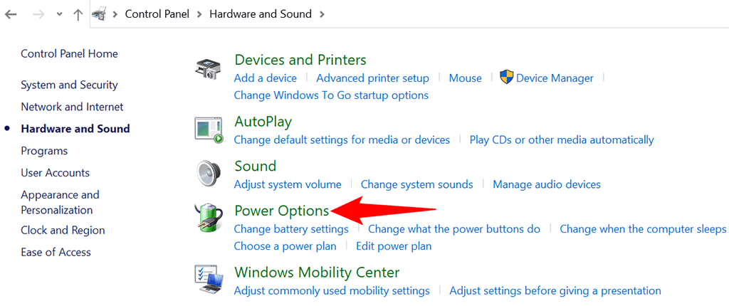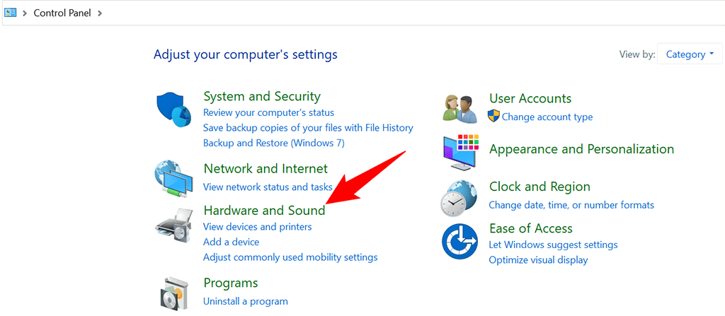 - Choose Hardware and Sound on the Control Panel window.