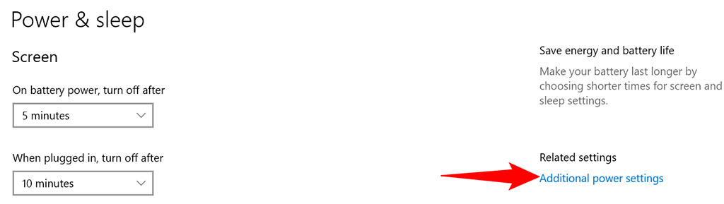 - Select **Additional power settings** from the right sidebar.