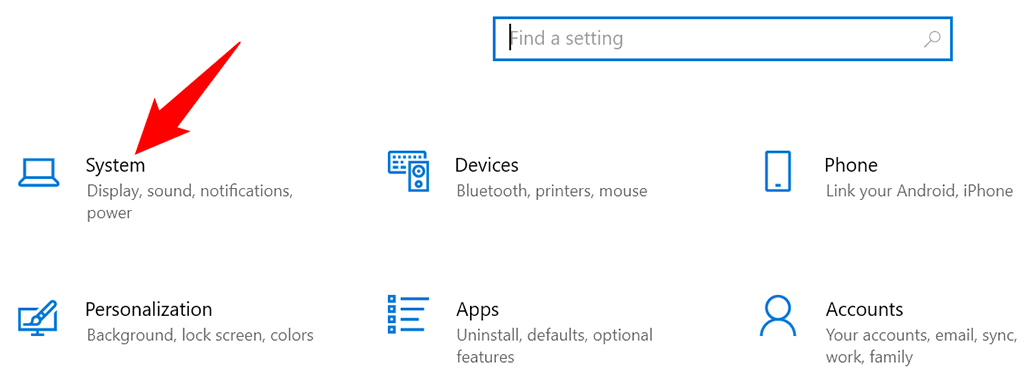 - Select System on the Settings screen.