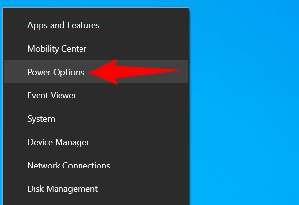 - Right-click the Start menu and choose Power Options.