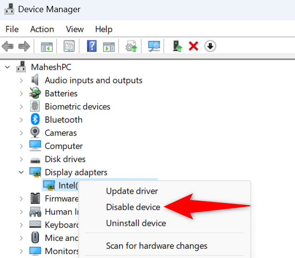 If your Windows PC has multiple graphics adapters, disable the unwanted ones to possibly resolve your app or game launch issue. Your item may have trouble working with multiple adapters, which you can fix by keeping only one adapter active at a time.