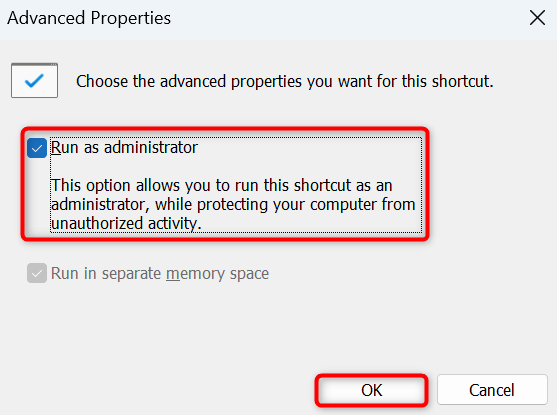 From now on, Windows will always launch your selected desktop shortcut as an administrator.