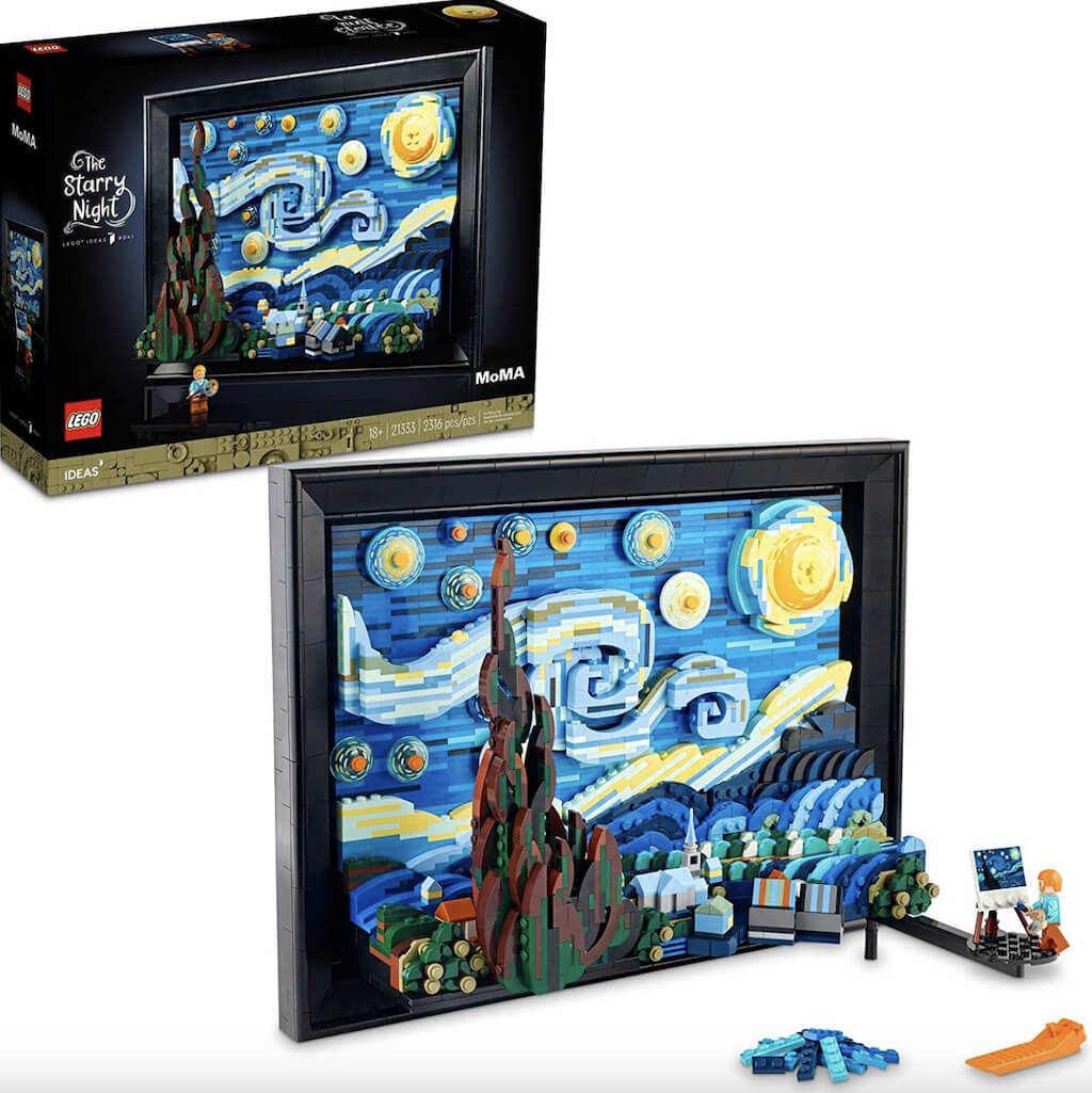 This piece results from a creative collaboration between LEGO and The Museum of Modern Art (MoMA). It has 2316 pieces which you and your partner will both enjoy putting together. Plus, there’s an adorable Van Gogh minifigure holding his paintbrush and palette.