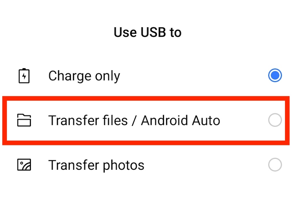 - Find the **Android system** notification that displays the current USB connection mode. * Select the notification to open your phone’s **USB Preferences**.