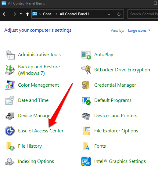If you’ve not managed to turn on the on-screen keyboard using the last six methods, you can still use the Control Panel in Windows 10 to access the keyboard.