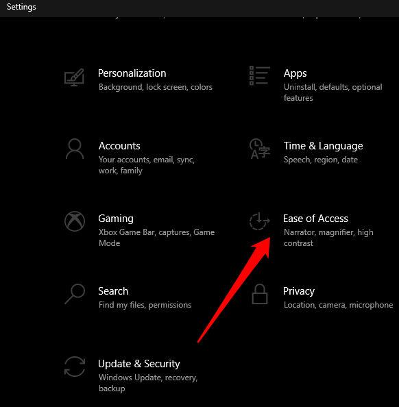 - Next, select **Ease of Access**.