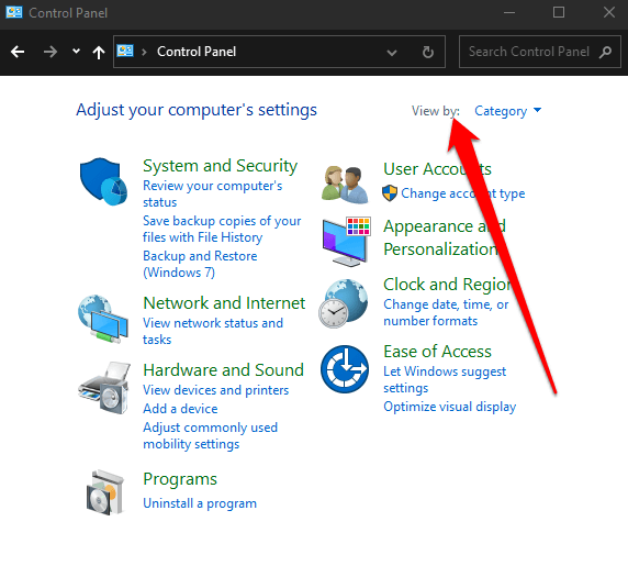 - To do this, open the Control Panel and select View by.