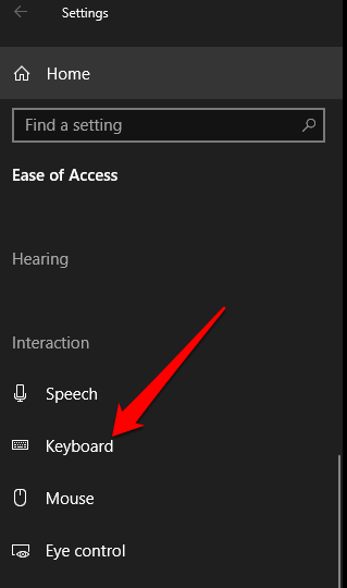 - Scroll down to the **Interaction** section on the right pane and then select **Keyboard**.