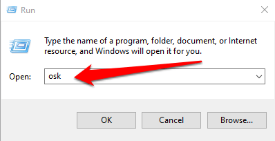 - Next, type **osk** in the Run dialog box and press **Enter**.