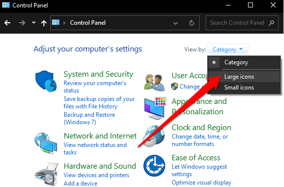 - Next, select** Large icons**.