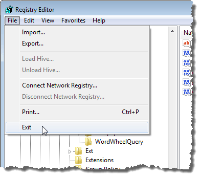 Close the Registry Editor by selecting Exit from the File menu.