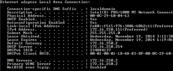 The IPCONFIG command gives you information about your network cards, IP addresses and also lets you renew your IP address. My favorite is** ipconfig /all,** which will give you detailed information about each network adapter on your computer. You can then use this info to figure out your router IP address (default gateway) and whether or not you’re getting an IP address from a DHCP server.