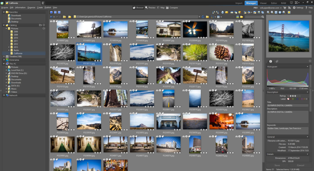 If you like ACDSee Photo Studio’s various categorization options and wish it came in a more user-friendly interface, Zoner Photo Studio is just the app for you. It has an extensive range of parameters you can use to organize your photographs, like color labels, keywords, ratings, etc.