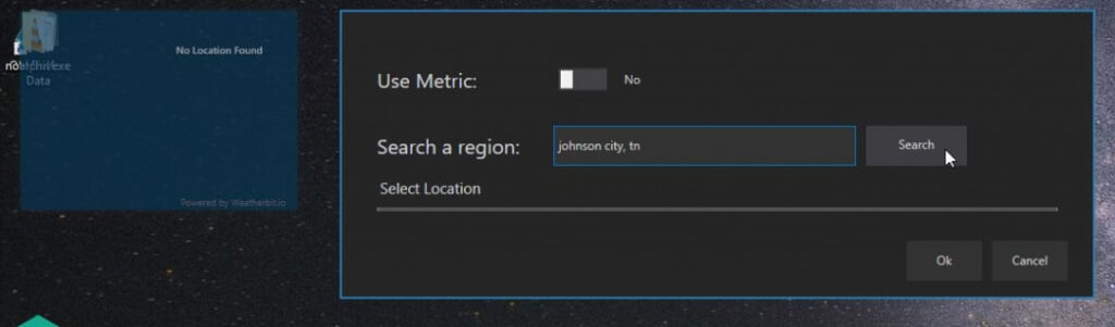 Select Ok and the desktop weather widget will start working as you’ve configured it.