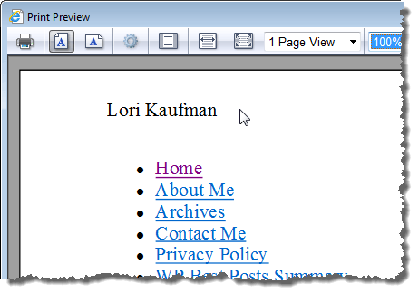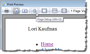To view your changed headers and footers, select Print | Print preview from the gear menu in the upper, right corner of the Internet Explorer window.