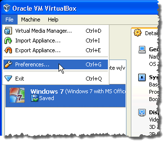 To change the Host key, open VirtualBox. Select Preferences from the File menu.