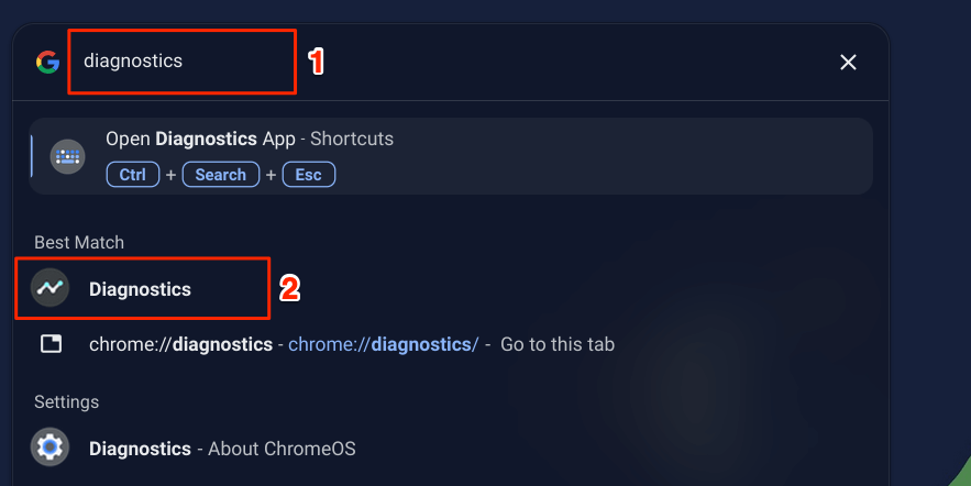 You can also use the Ctrl + Search + Esc keyboard shortcut to open the Chromebook Diagnostics app.