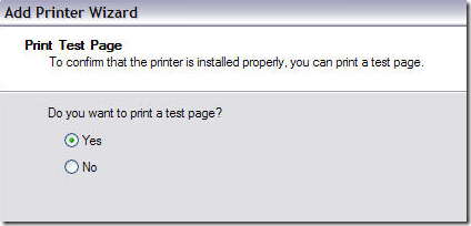 Give your printer a name and choose whether you want to use it as the default printer or not. Click Next and choose whether you want to share the printer with other users on the network. Finally, click Next and you will be given the option to print a test page.