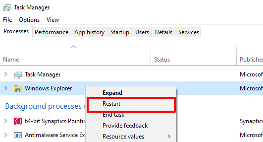 1. Restart Windows Explorer