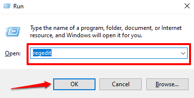 - Launch the Run box (Windows key + R), type regedit in the dialog box, and click OK.