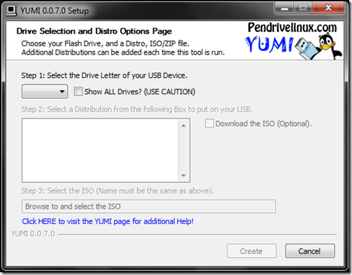 Finally, click the Create button to begin making the ISO bootable and storing it to the USB drive. From here, the YUMI app will process and begin creating the bootable distro.