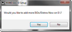 From here, you can simply click the Yes button, which will return you to the YUMI start page, where you can add another bootable distro, using the above steps.