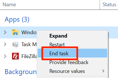 - Right-click on the process that says Windows Explorer and select End task. You need to close the Explorer before you can see the newly added item in the context menu.