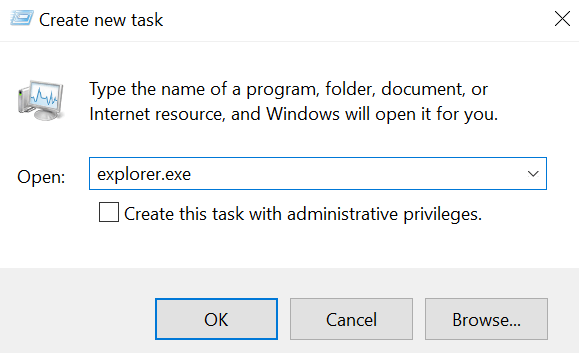 - Type in explorer.exe and hit Enter. It’ll relaunch the Windows File Explorer.