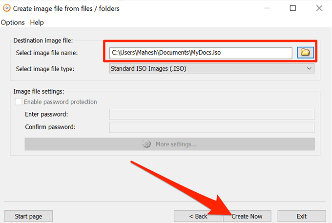 - Finally, click on Create Now to start creating an ISO out of your chosen folders.