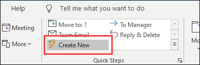 - Select **Create New **in the **Quick Steps **section of the **Home **tab in Outlook.
