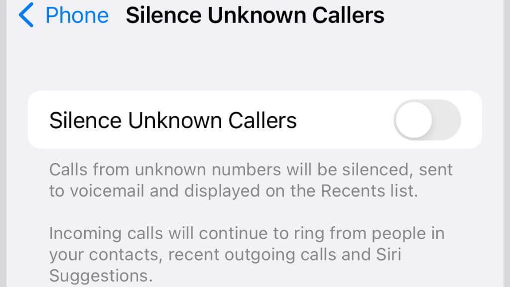 On Apple iPhones, you’ll have to go to Settings > Phone > Silence Unknown Callers and make sure it’s not toggled on.