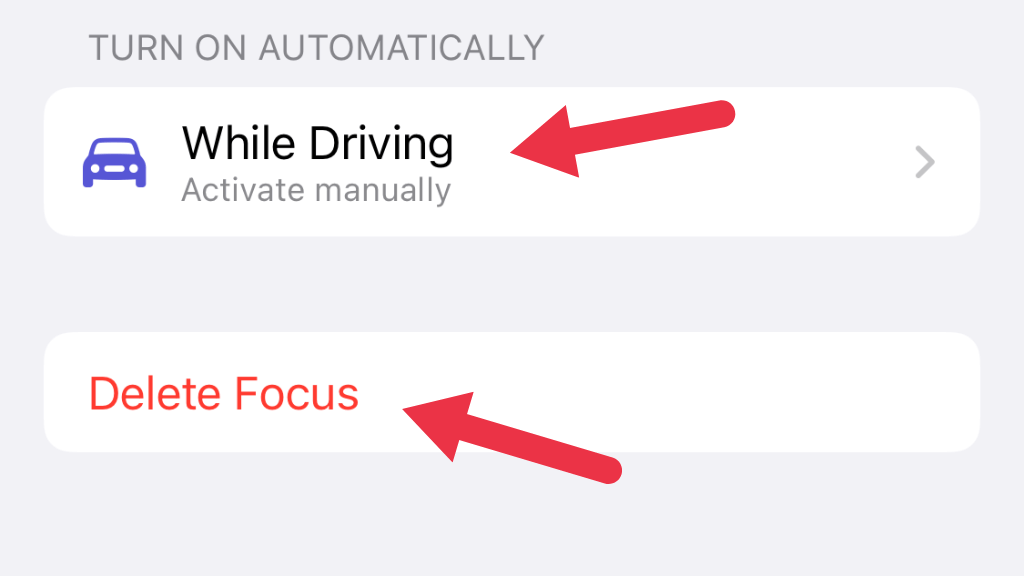 If you don’t see “Driving” under the list of focus types, don’t worry. You can add it by tapping the + button. You can also remove any focus by using the Delete Focus button at the bottom of its settings page.