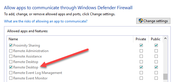 If you were to run this command, then go view the allowed apps in Windows Firewall, you would see that the Remote Desktop item is now checked: