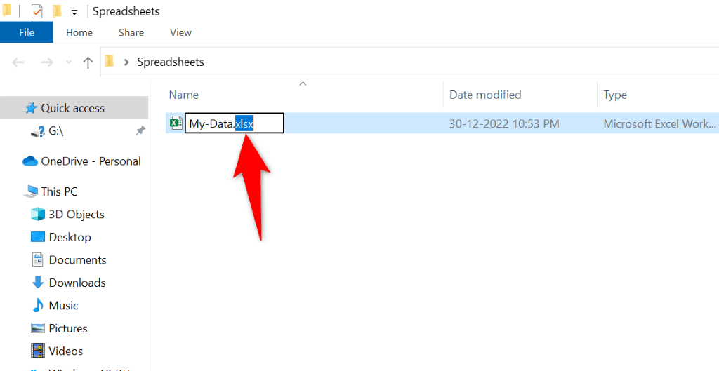 - Change the file extension to XLS or XLSX and press Enter.