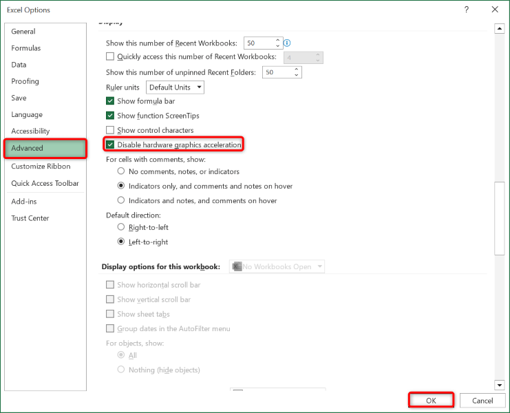 7. Turn Off Hardware Acceleration in Excel