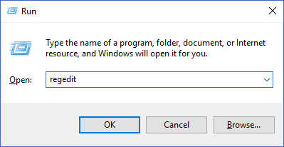 First, press the Windows key + R to bring up the Run prompt. In the field, type in “regedit” and press Enter.