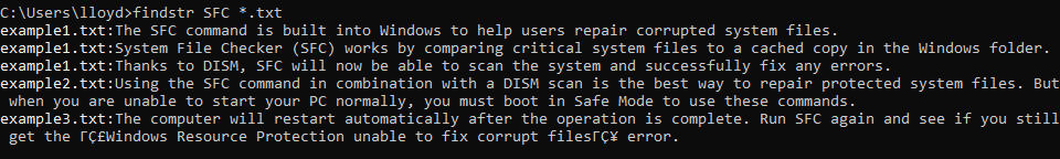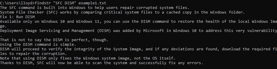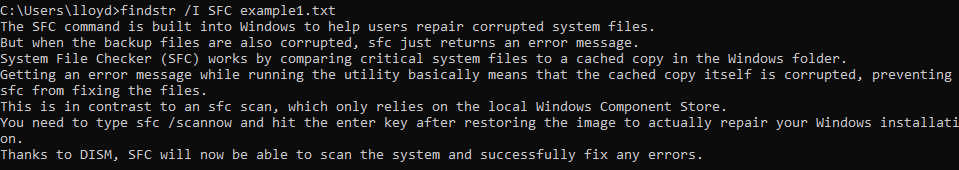 **findstr “SFC DISM” example1.txt **