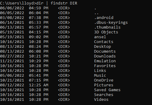 **dir | findstr DIR **