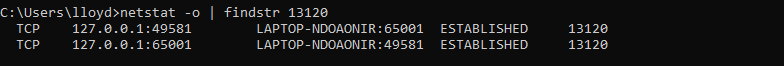 **netstat -o | findstr 13120 **